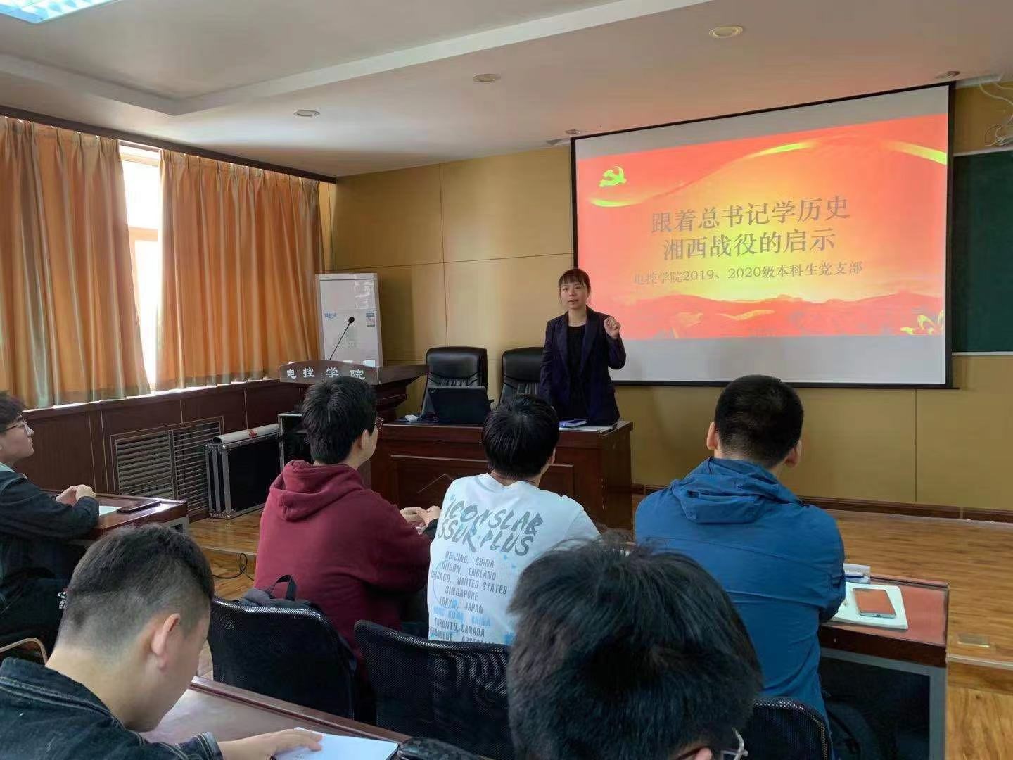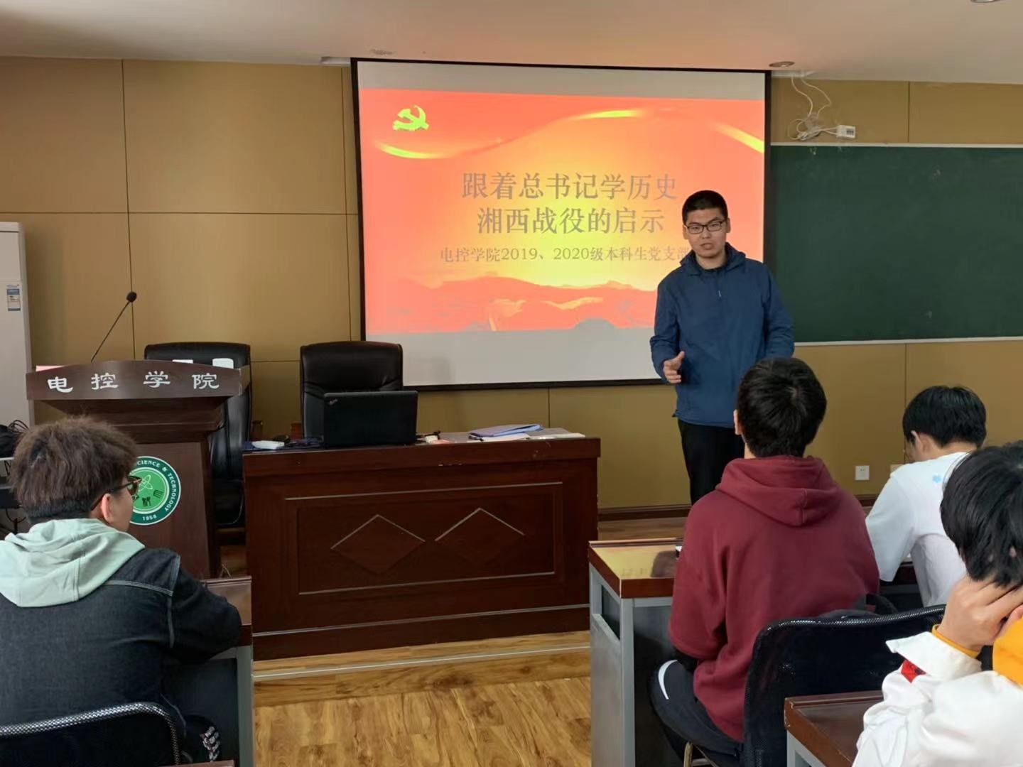 4月25日,习近平总书记赴广西考察,首站来到位于桂林市全州县的红军长征湘江战役纪念园。这里正是当年湘江战役中脚山铺阻击战的战场遗址所在地。总书记曾经多次谈起这场惨烈的战役。80多年过去,硝烟已散,思考远未停止。为加强支部党员党史知识学习,2021年4月28日电控学院2019、2020级本科生党支部于17-318会议室开展“跟着总书记学历史-湘西战役的启示”主题学习活动。