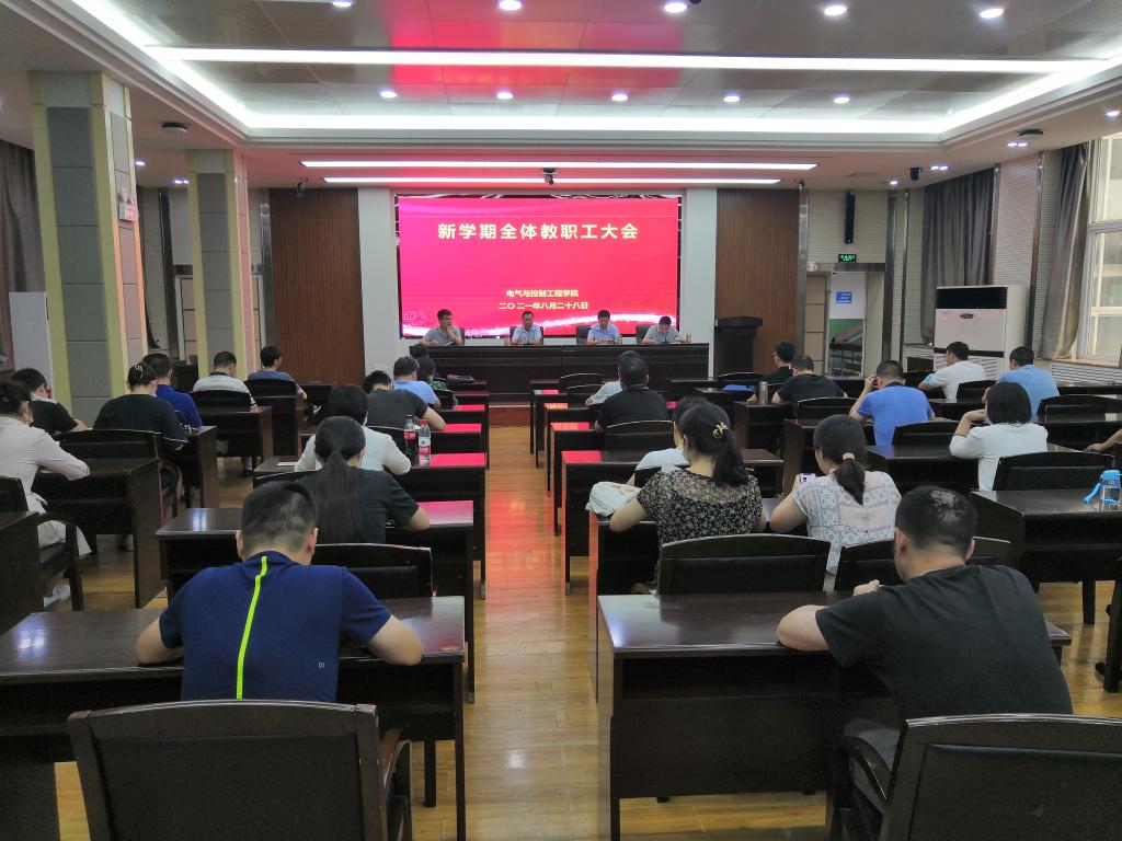 2021年8月28日下午14:30,电控学院在雁塔校区图书馆二楼报告厅召开新学期教职工大会,学院党政领导班子和学院全体教职工参加了此次会议,学院党委书记杨华主持大会。