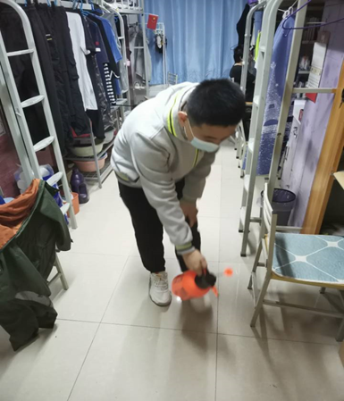学院派专人为学生宿舍公共区域进行消毒,组织志愿者在校园中督促学生正确佩戴口罩。