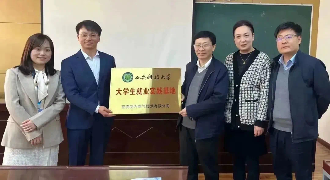 宣讲会结束后,电控学院院长刘树林、副院长潘红光、党委副书记马婧智闻同西安图为电气技术有限公司就公司的相关产品、技术以及培养体系等进行交流,并对进一步推进校企合作进行了深入探讨,表示今后将在学生培养,实践实习,职业生涯规划等方面加强合作,引导更多的大学生能够夯实专业基础、提升专业技能,积极助力学生更好就业。随后,电控学院与西安图为电气技术有限公司举行“大学生就业实习基地”挂牌仪式,所有人合影留念。