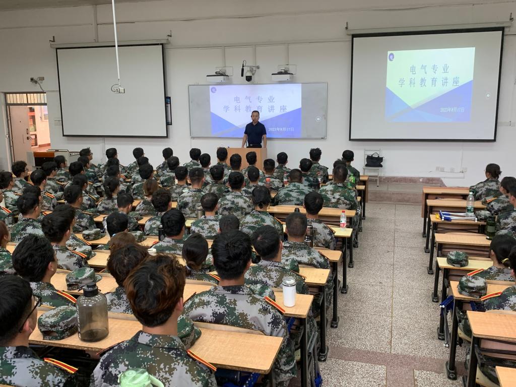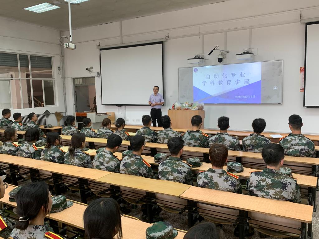 为了丰富2022级学生军训生活,加深学生对本专业学科的认识和理解,2023年8月17日下午,电控学院再骊山校园3号教学楼举办了各专业学科教育讲座。学院党委副书记马婧智闻,系部主任李磊、张玉峰、杨龙海,学术方向带头人刘宝,2022级辅导员丁元、赵晨,全体教官及参训学生参会。
