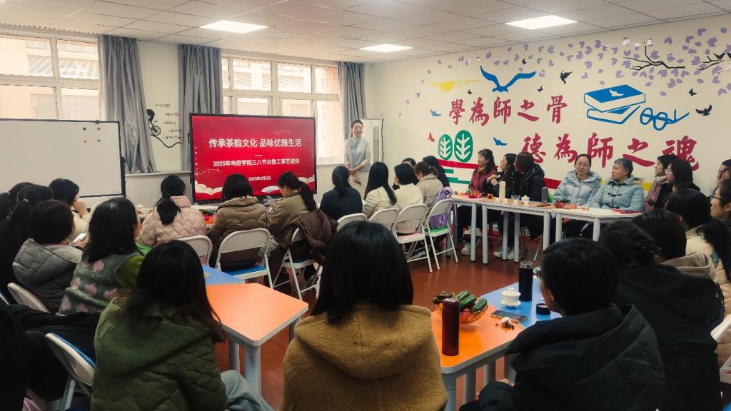 在第115个“三八”国际妇女节来临之际,为传承弘扬中华优秀传统文化,了解茶道,体验茶艺礼仪,感受中华传统文化魅力,电控学院工会于2025年3月5日下午开展了“传承茶韵文化·品味优雅生活——三八节女教工茶艺培训”活动。