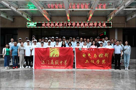 研学之旅开启仪式在电控学院318会议室举行。仪式由赵建文副院长主持,刘树林院长致欢迎词并作学院介绍,招办主任李磊介绍学校2019年招生政策,法门高中副校长赵长春发言,最后杨勇书记与法门高中赵长春副校长共同开启研学之旅。学校电控学院丁铂副书记、各系部(中心)主任、辅导员、宣传部等参加了开启仪式。