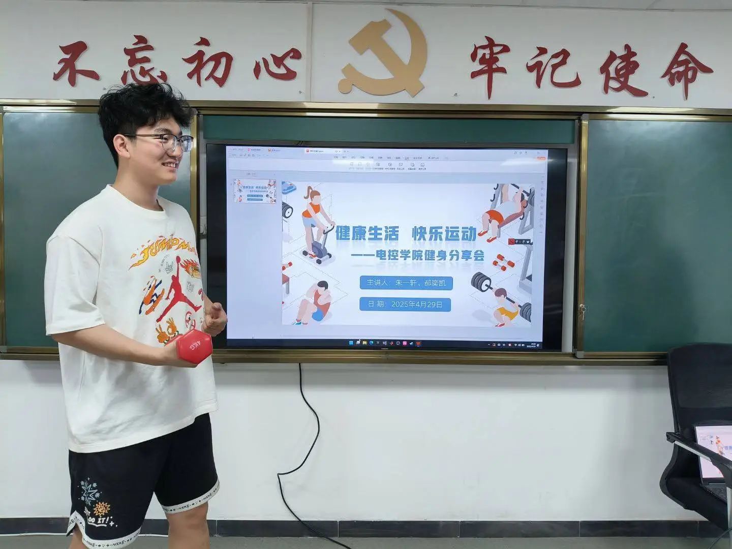 为了提升增强学生体质和学生健康意识,传授科学健身知识,助力学生养成良好运动习惯,4月29日,电控学院在“一站式”学生社区成功举办健身分享会。参加本次活动的有2022级辅导员张延老师、健身分享学长朱一轩及学生代表。