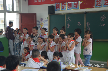中午12点50分,所有参与活动的志愿者在明德广场集合完毕后乘车出发前往何寨小学。到达之后,志愿者们为那些四年级的小朋友表演了精心准备的节目。